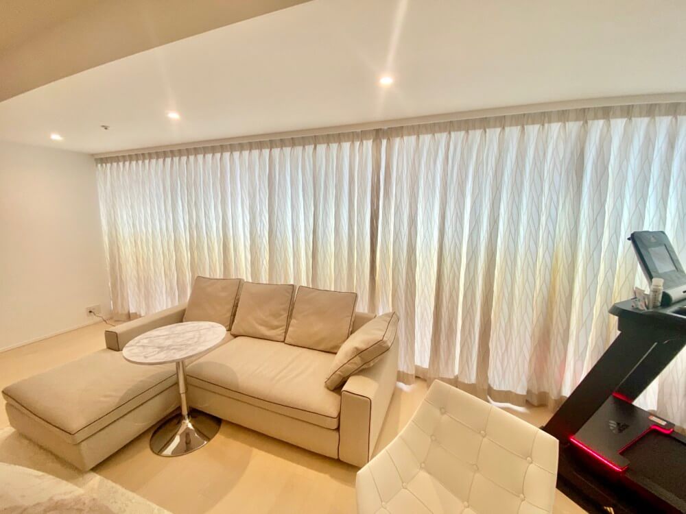 ウィンドウトリートメント次第で、天空のエグゼクティブ空間が、更に憧れのインテリアへとグレードアップします。