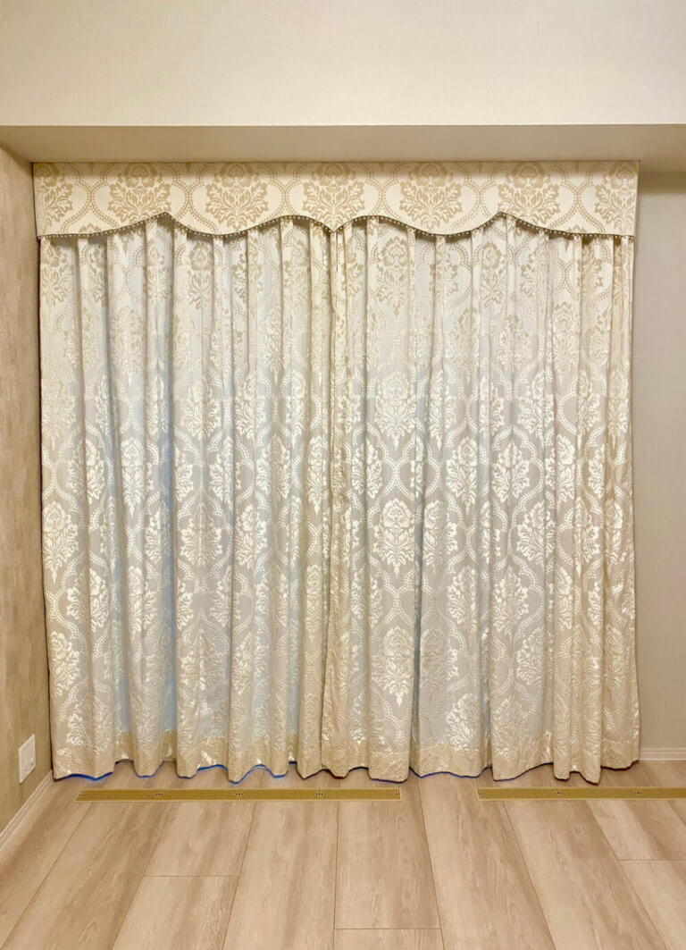 古さが全く無い、華やかなウィンドウトリートメントとなりました。