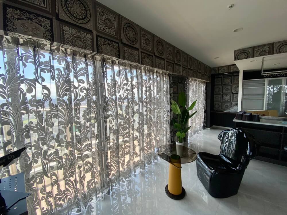 イタリア製の古典柄をモダンにアレンジしておりますアカンサス柄のレースカーテン。