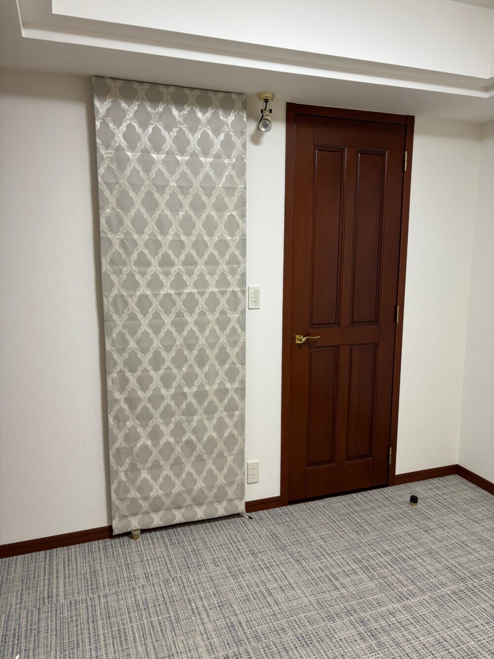 下ろしてしまうと、そこにミラーあるとはわからず、タペストリーを掛けているようです。